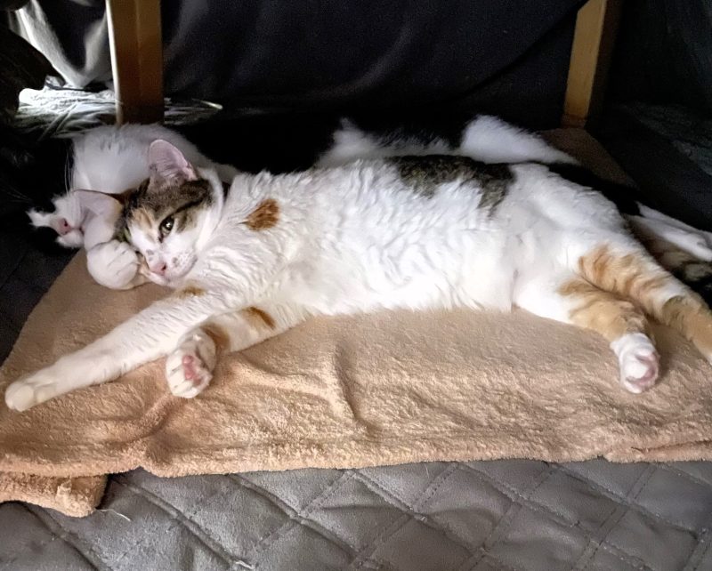 ノアは日中は日差しの当たる窓辺で寝るのが好きなのですが、メルはこたつラブ。一日中入っています。
