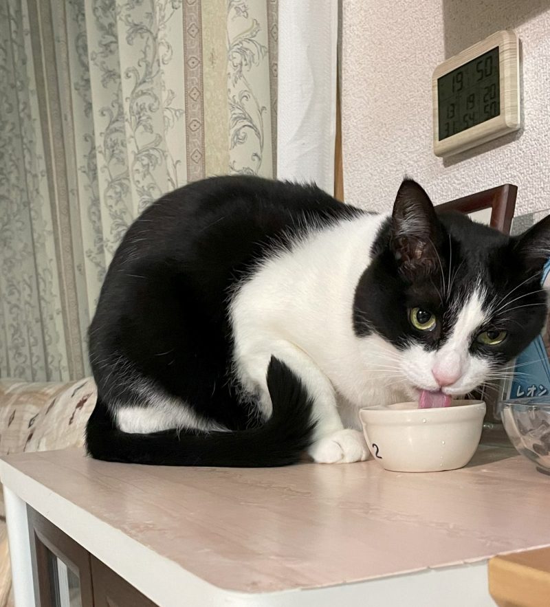 毎朝夫が水を入れ替えてくれるのですが、気づけば半分くらいになっています。